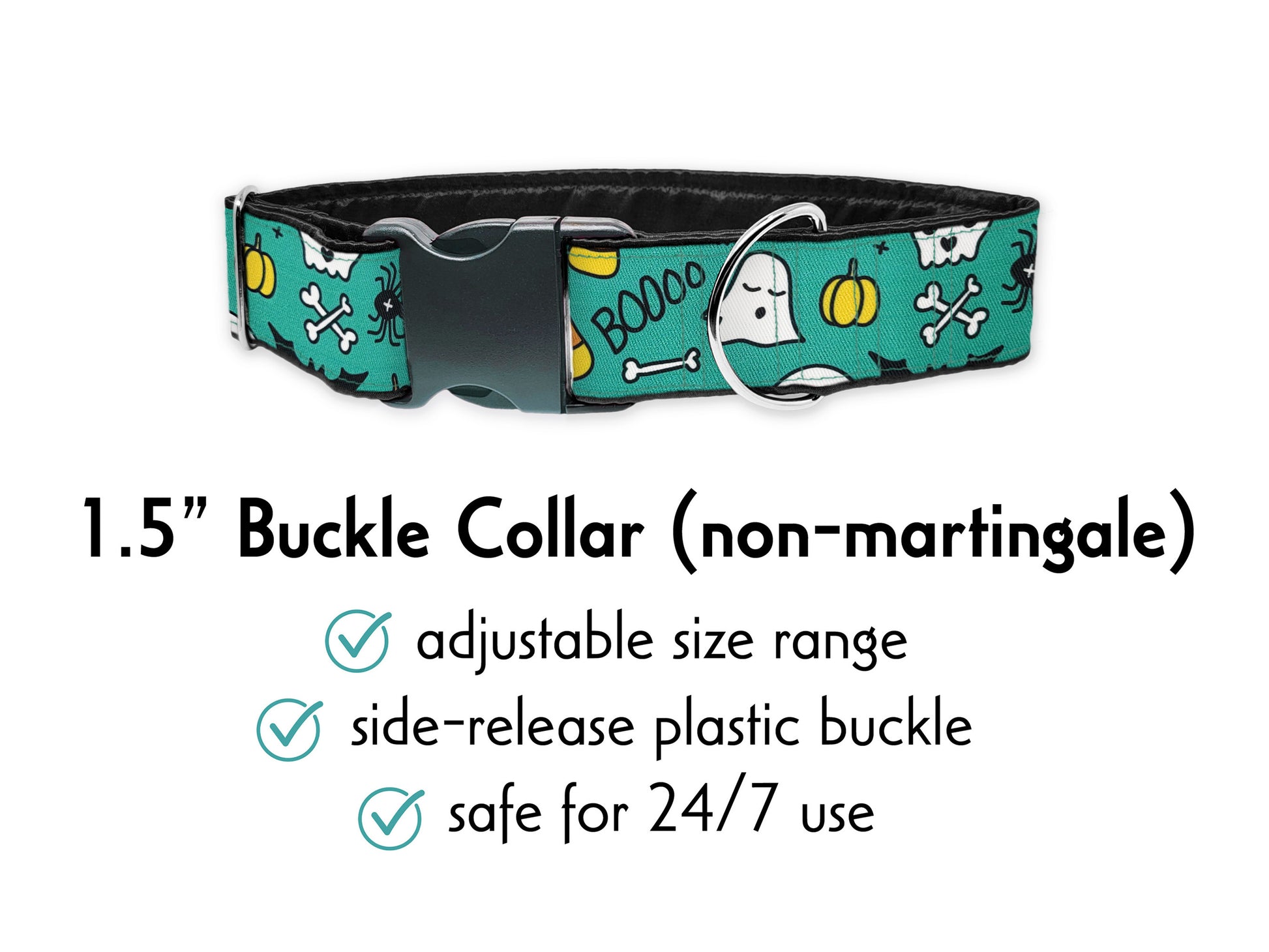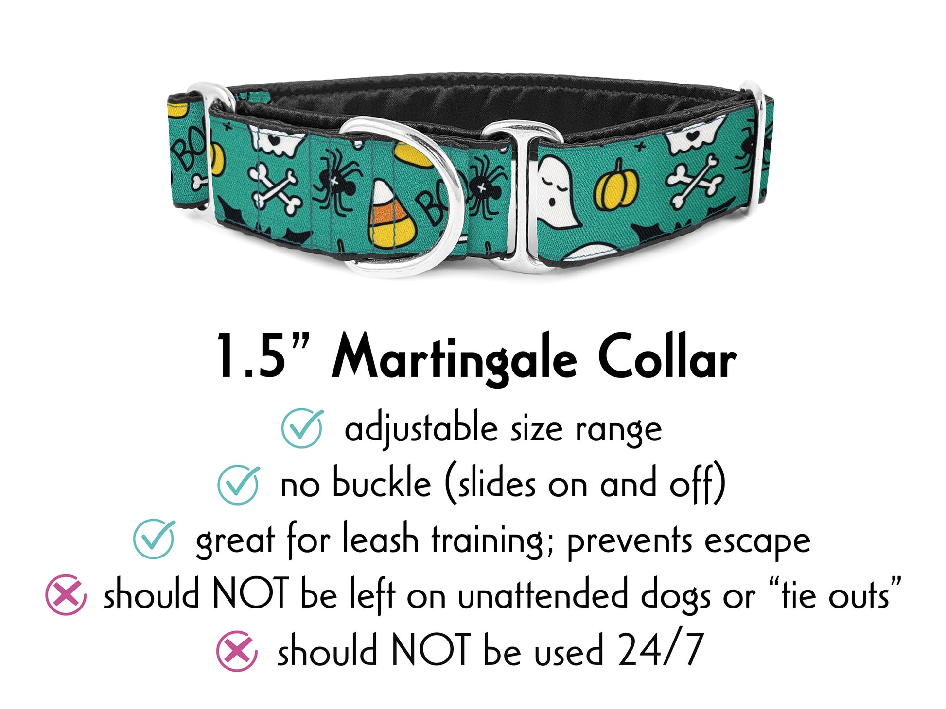 Halloween Ghosts & Candy Corn in Teal - Martingale Dog Collar or Buckle Dog Collar - 1.5" Width